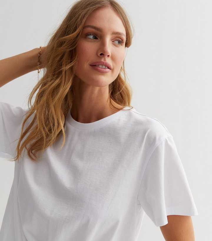 সাদা সুতির টাই সামনের ছোট হাতা টি-শার্ট | নতুন চেহারা